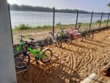 Sur la photo, il manque celui de deux adultes. Et parfois nous atteignons les dix vélos alignés près du fleuve.